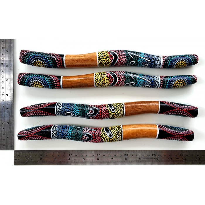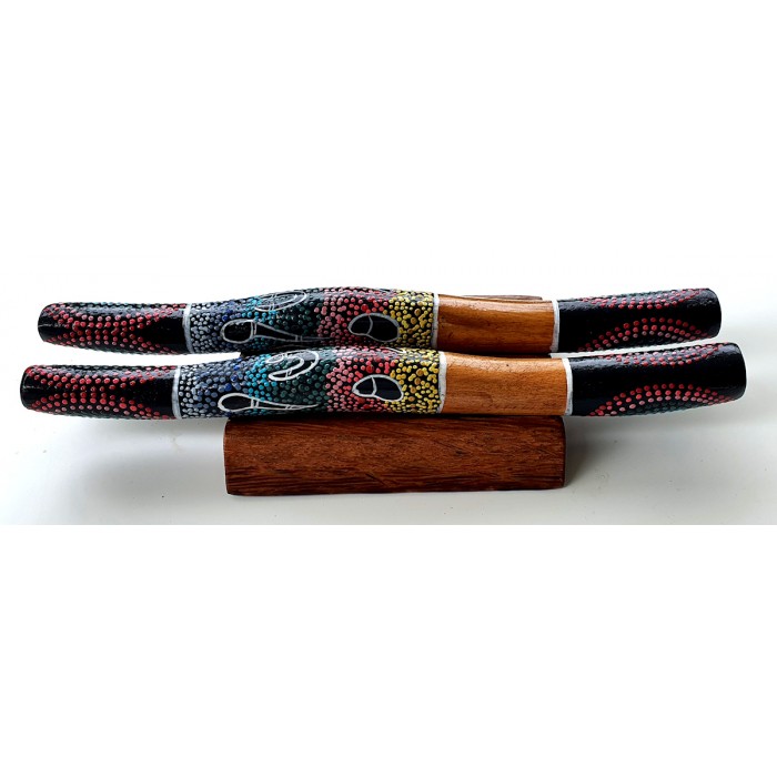 • Pair of hand-painted clapsticks with detailed Aboriginal dot-art motifs